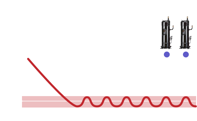 인버터 압축기 구동방식의 히트펌프로 생산장비 및 축매 냉각 또는 기계 세척용 냉온수 공급이 필요한 공장 및 산업시설에 활용 운전 주파수 가변의 인버터 운전으로 저부하 운전 시 취출온도 헌팅 문제를 최소화함으로써 안정적인 출수 온도 관리 가능하며 연간 에너지 비용 최대 50% 절감