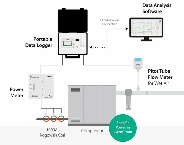 압축 공기 누출 위치 및 누출량을 빠르게 파악하여 에너지 손실을 예방